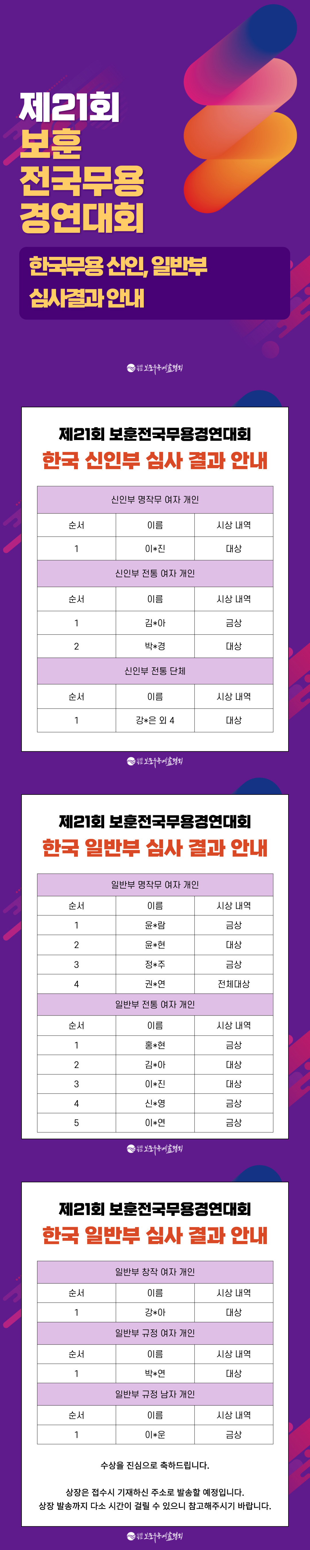 Á¦¸ñ Á¦21ȸ º¸ÈÆÀü±¹¹«¿ë°æ¿¬´ëȸ Çѱ¹¹«¿ë ½ÅÀκÎ, ÀϹݺΠ½É»ç °á°ú ¾È³»